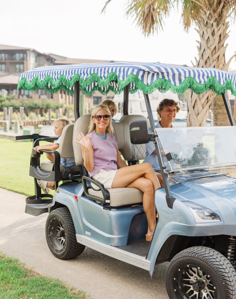 Cart Couture brings that spirit to life with creative, beautifully designed golf cart covers. From classic stripes and scalloped edges to festive holiday themes, each cover adds personality and charm to the carts that define coastal living. What started in Point Clear, Alabama has quickly spread across the region, from the Gulf to the East Coast.